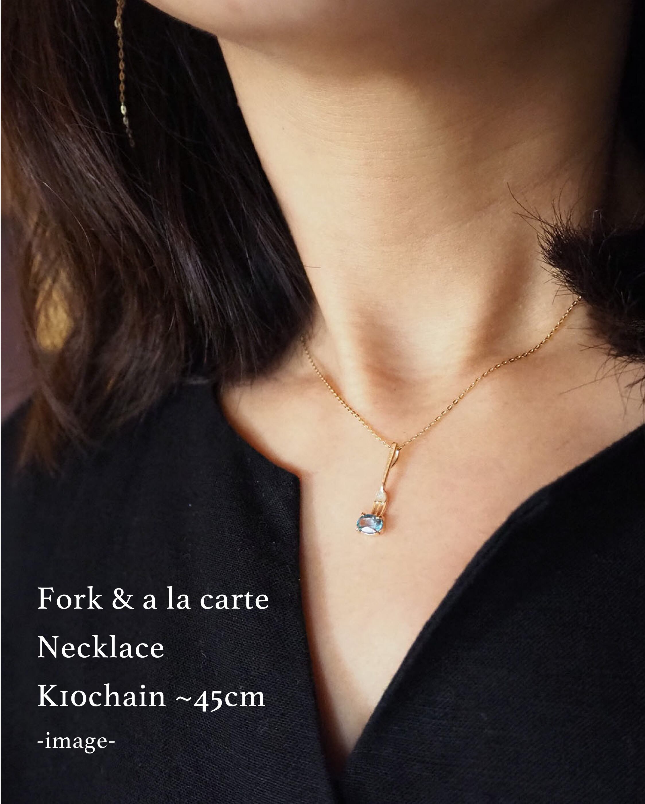 ペンダントトップのバチカン部分がフォークになって、おいしそうに見える天然石をいただくようなイメージでデザインしました。