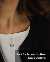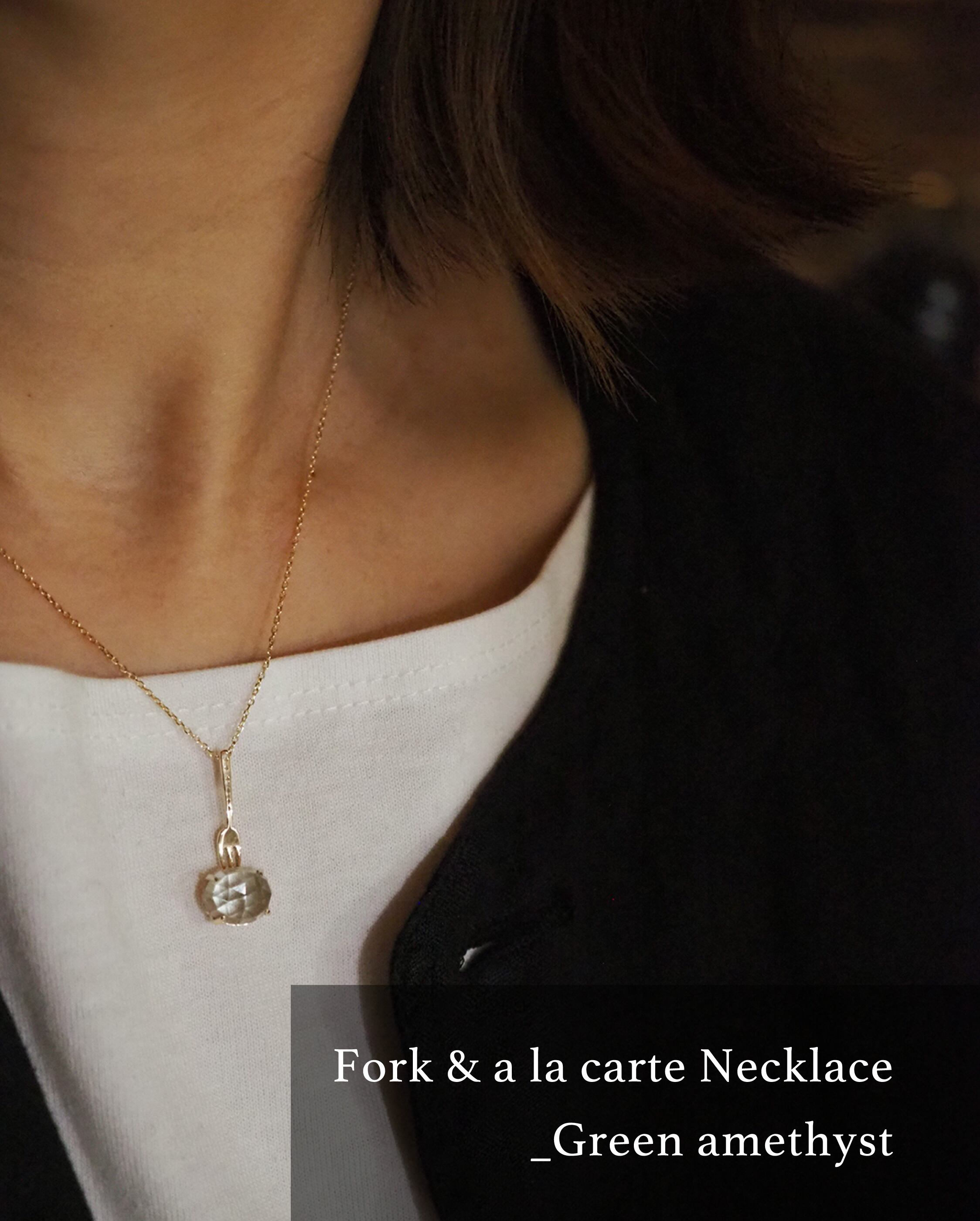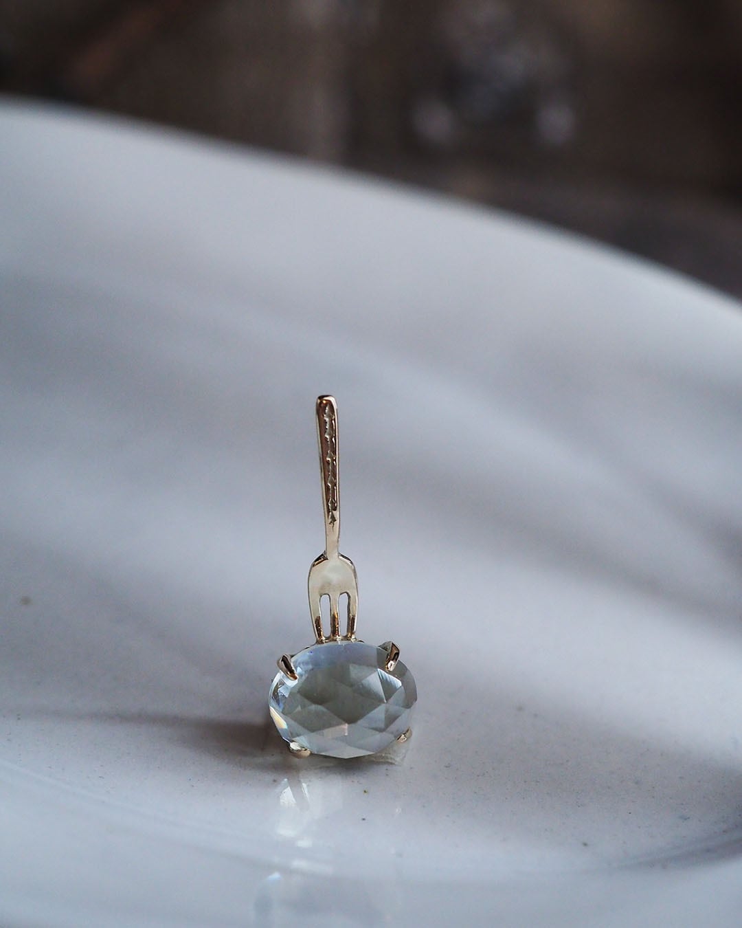 天然石にフォークを合わせることでさりげなくユーモアをプラスしたジュエリーに。