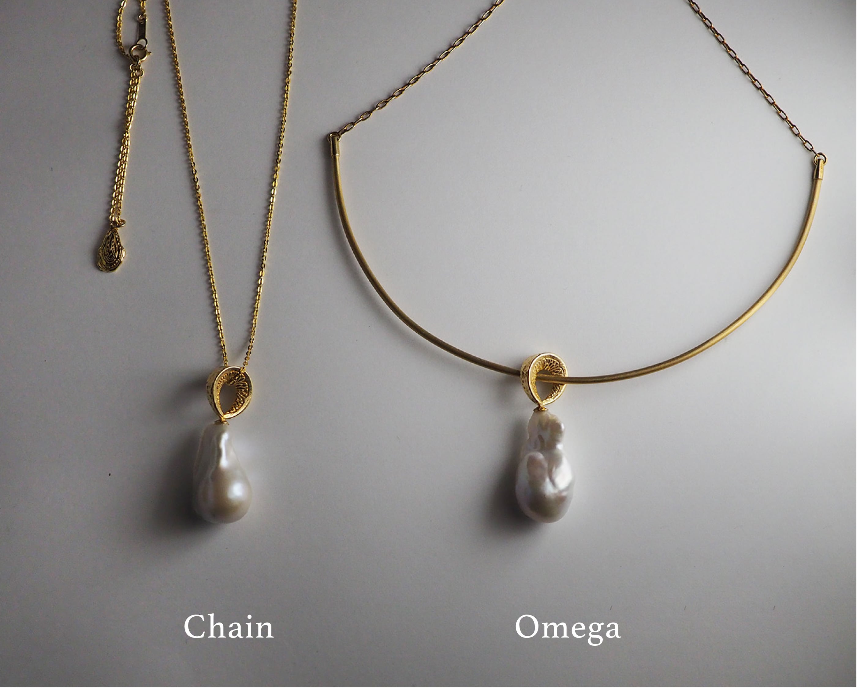 ネックレスはチェーンまたはオメガと雰囲気の違うタイプをご用意しました。