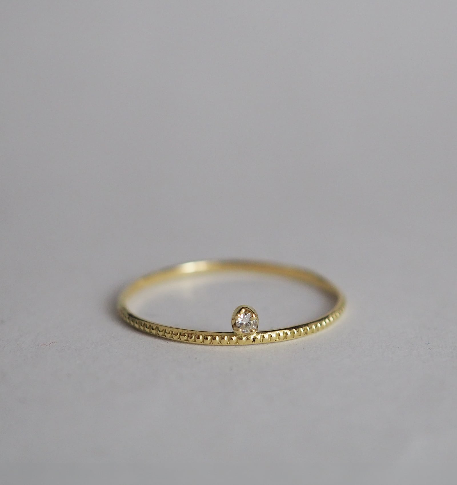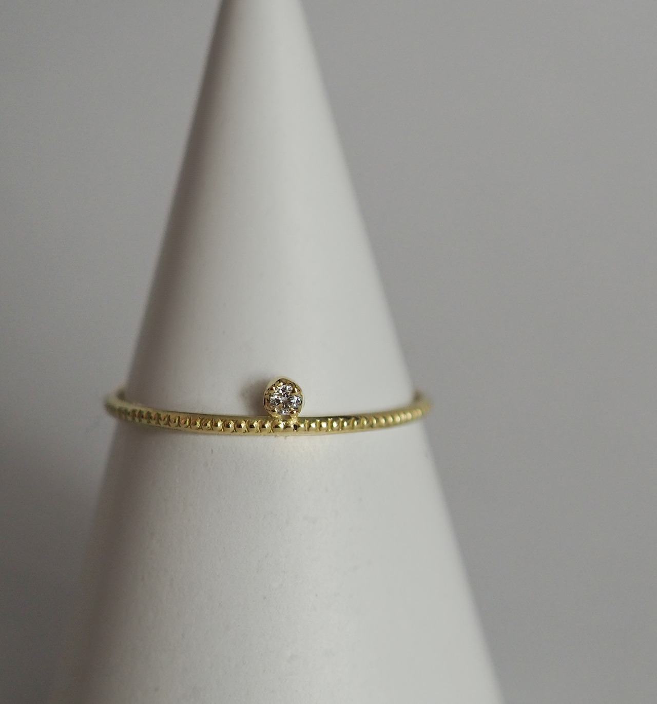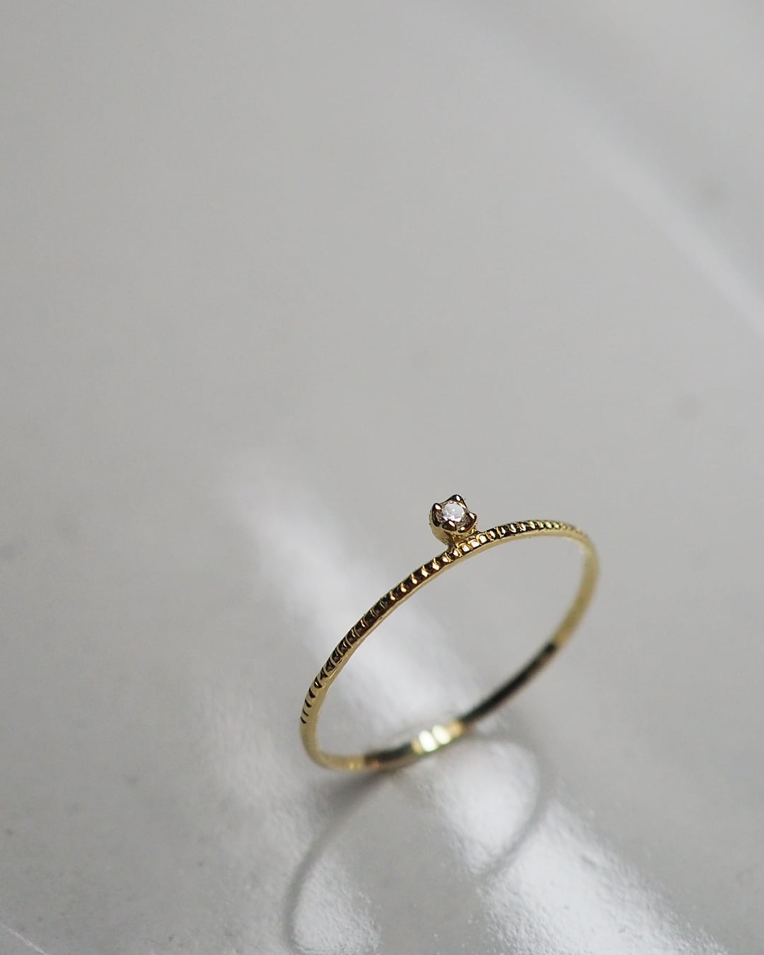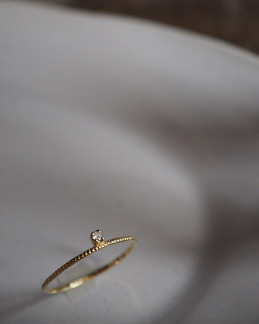 K18のスキニーリングが効果的に、さり気なく上品な存在感で指元を際立てます。