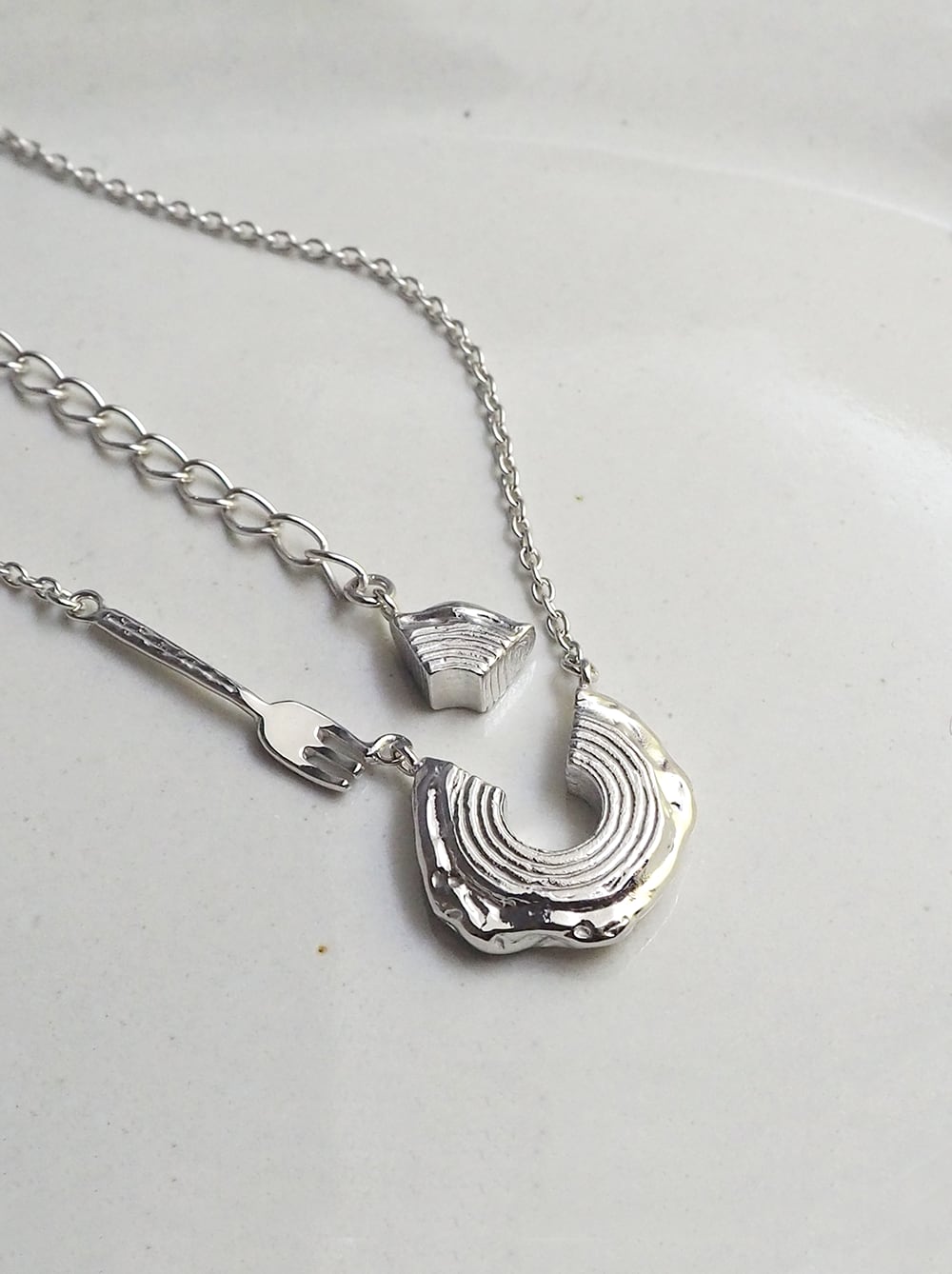 お菓子のバウムクーヘンがモチーフのネックレス。