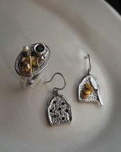 彫りだから出せる細かな模様が入った銀のプレートが食卓(指)を飾ります。