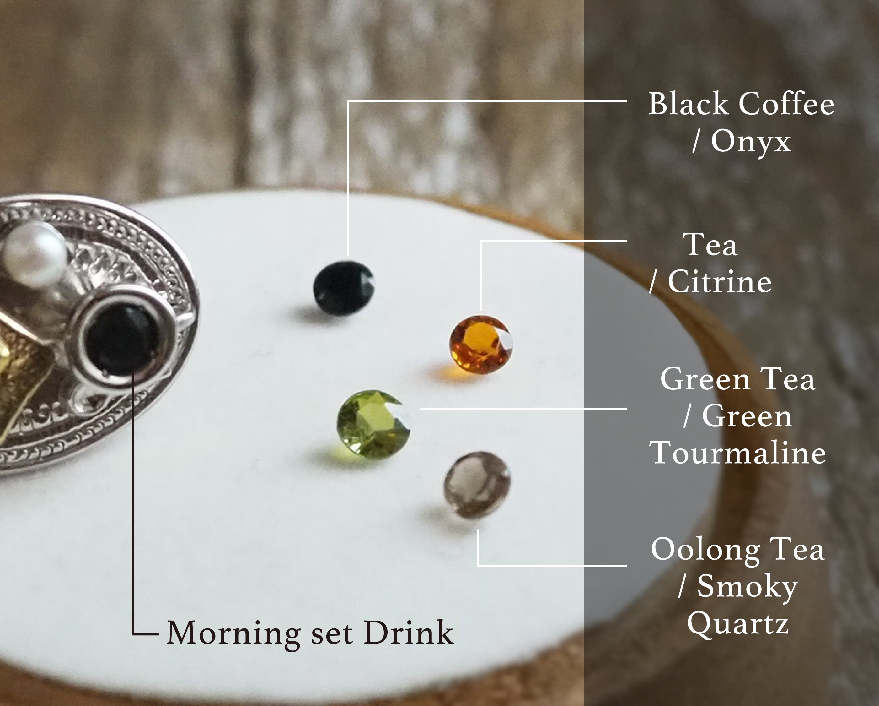 定番のコーヒー、紅茶などのカラーをイメージした4種の石からお選び頂けます。
