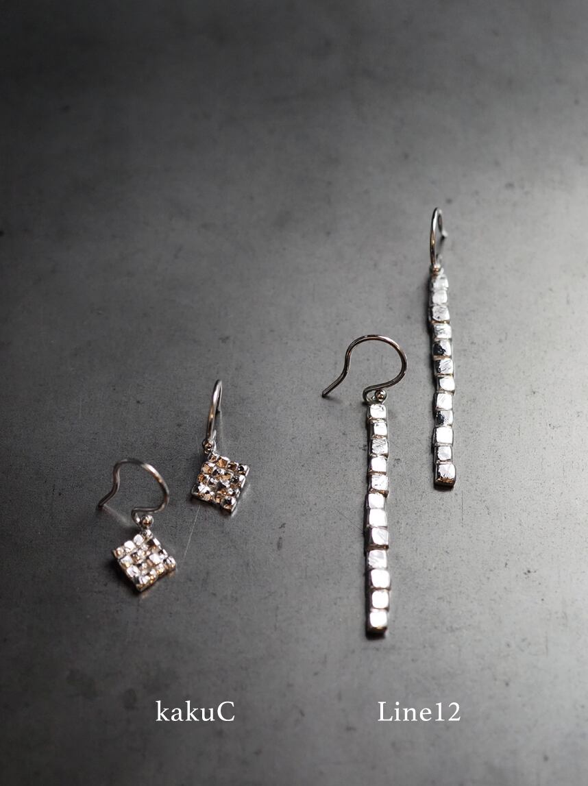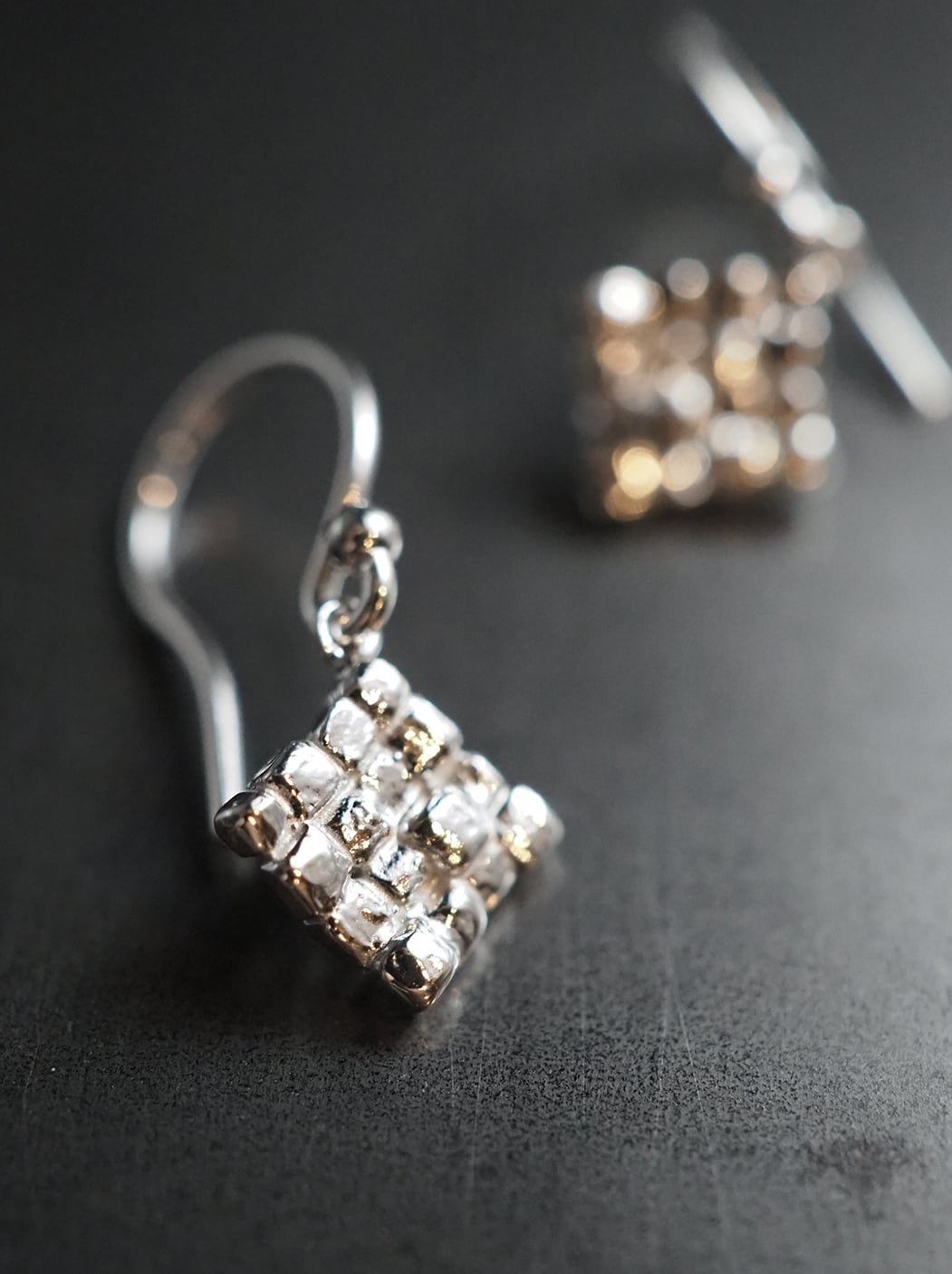 表情の違う小さな石を四角く敷き詰めた石畳がモチーフのピアス。