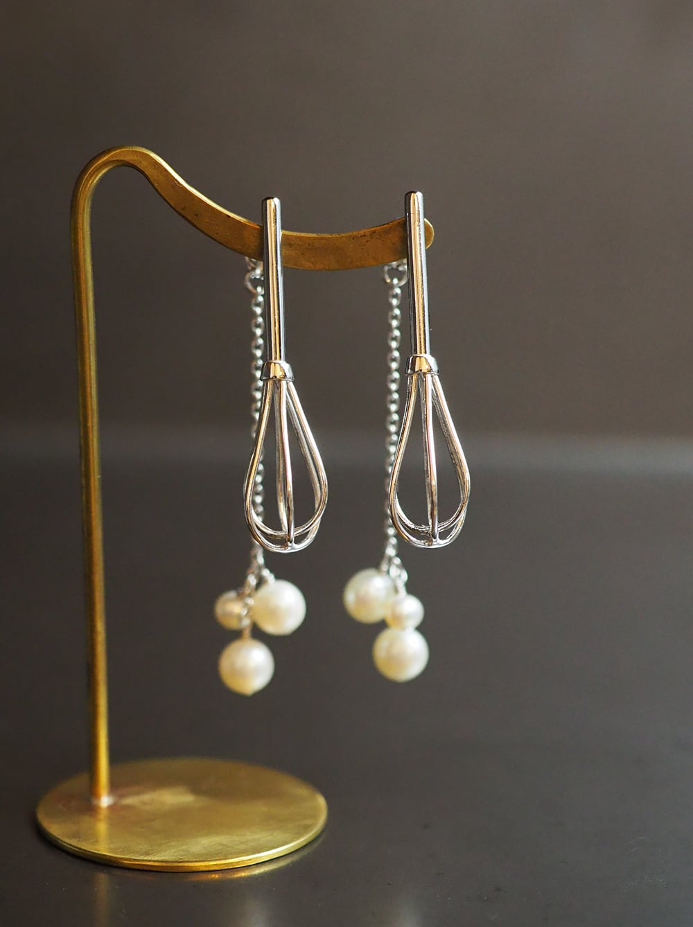 誰もが知っている調理器具のひとつ泡立て器がモチーフの2WAYピアス。