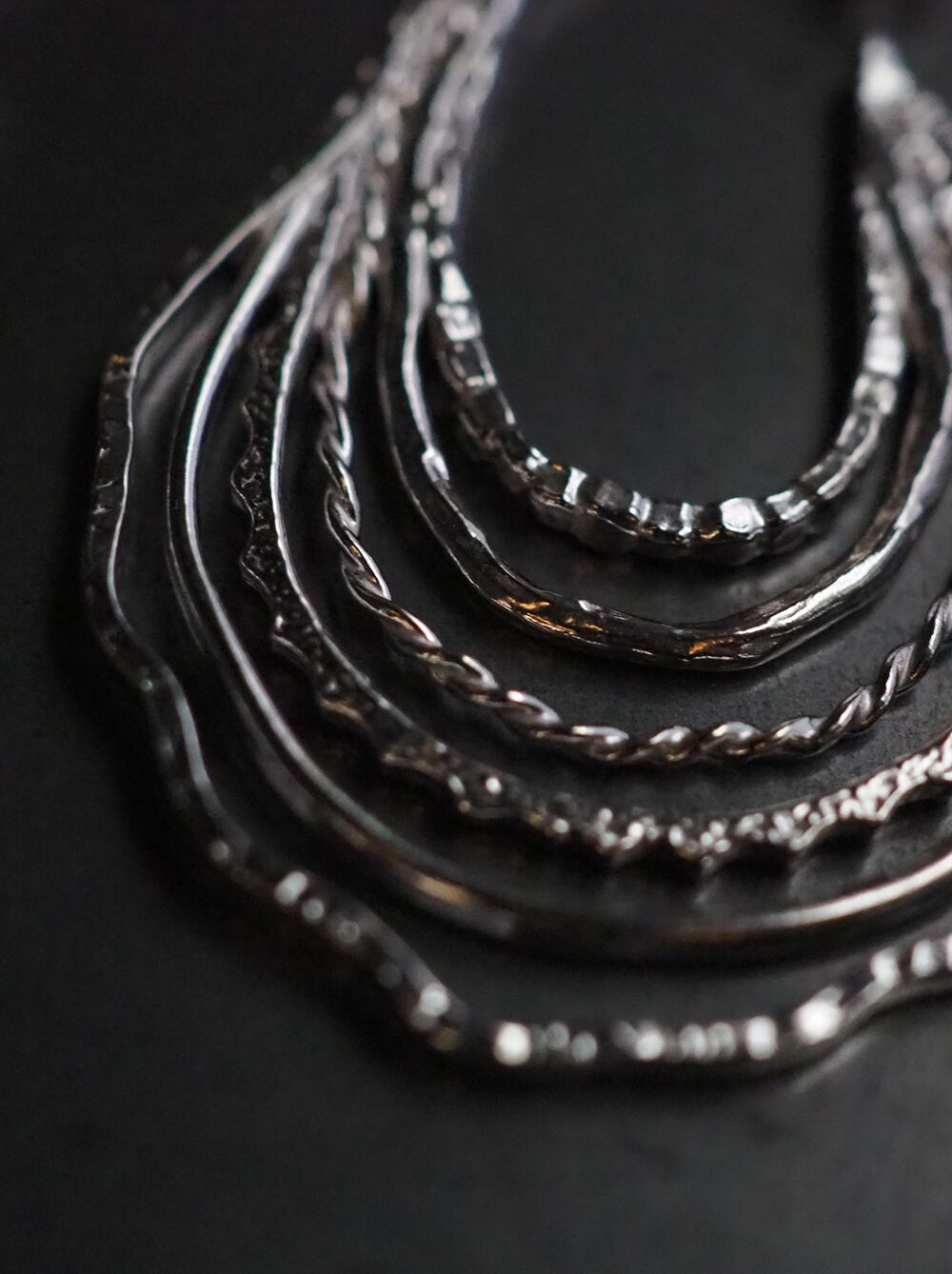 カキ模様を1ラインづつ地金にテクスチャーを入れて表現。成長の過程がわかる貝のライン。