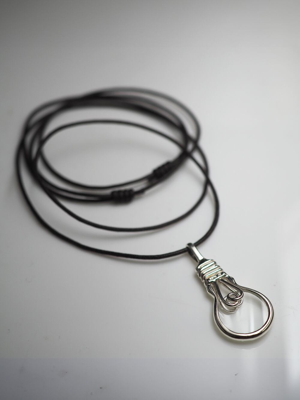 イラストで描くような、アイデアが閃いた時の「頭上に浮かぶ電球」をモチーフにしたペンダント。